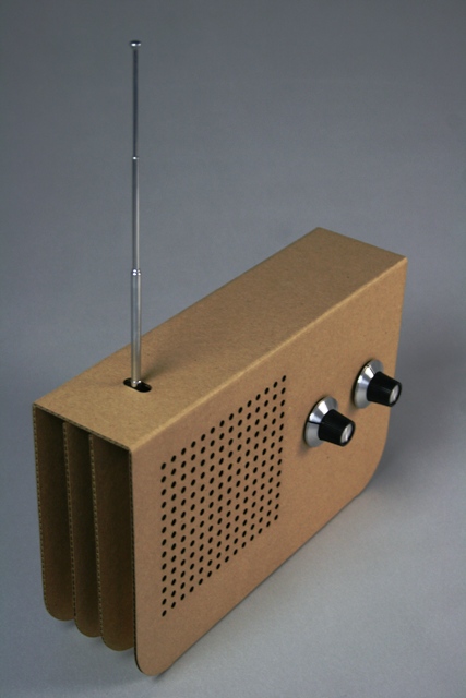 Radio realizzata in cartone riciclato con presa per il collegamento del lettore MP3